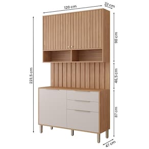 Material da estrutura: Tampos e Laterais em MDF 15mm; Prateleira e portas em MDF 12mm com ripado em MDF em 6mm;