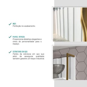 Atributos do ProdutoO Aéreo Ripado MDF Branco possui prateleiras espaçosas e um tubo ouro velho que adiciona um toque de elegância ao móvel. Sua estrutura em MDF garante durabilidade e resistência, enquanto as dimensões cuidadosamente pensadas proporcionam um ótimo aproveitamento do espaço na sua cozinha.
