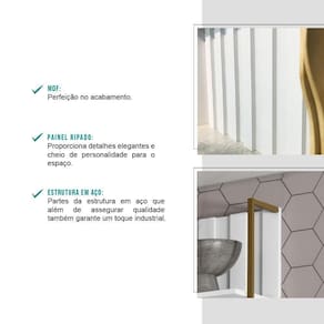 O Aéreo Ripado MDF Branco possui prateleiras espaçosas e um tubo ouro velho que adiciona um toque de elegância ao móvel. Sua estrutura em MDF garante durabilidade e resistência, enquanto as dimensões cuidadosamente pensadas proporcionam um ótimo aproveitamento do espaço na sua cozinha.