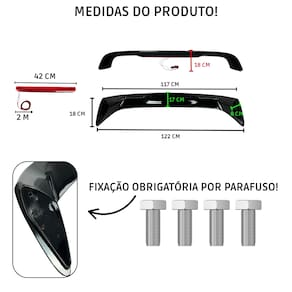 Pacote Inclui:- 1 Spoiler traseiro;- 1 kit parafuso para instalação.