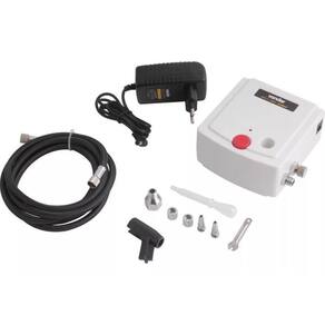1 aerógrafo com 10 acessórios, sendo: 1 ferramenta de aplicação com copo, 1 minicompressor, 1 adaptador 100 v - 240 v, 1 mangueira com 1,8 metros, 1 chave, 1 adaptador 1/4 npt fêmea - 1/8 npt macho , 2 conectores para mangueira rosca 1/8 npt fêmea com espigão 3/16 , 1 tubo de sucção e 1 suporte de apoio para aerógrafo