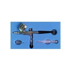 Aerógrafo 1001 De Metal Profissional Bico e Agulha: 0,35 mm Capacidade do Reservatório: 10 ml Compressor sugerido: Comp 1 ou Comp 3 Corpo Metálico Cromado Cor: Preto Agulha e bico, aço inox. Desenvolvido para desenhos com traço fino, proporcionando ótima qualidade no acabamento. O reservatório fixo em cima foi elaborado para facilitar a utilização do aerógrafo, dupla ação primeiro liberam o ar e depois a tinta - Controla independente o fluxo de ar e tinta.