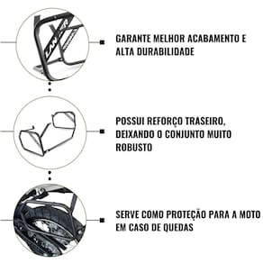 Enfrente obstáculos sem medo, sabendo que o afastador não só protege seu alforge, mas também absorve impactos em quedas, preservando sua moto.