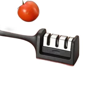 Mantenha suas facas sempre afiadas e prontas para uso com nosso amolador de facas 3 em 1 em aço inoxidável resistente. Com sua eficiência e praticidade, este utensílio se tornará um aliado essencial em sua cozinha. Adquira o seu agora e eleve o nível de precisão em seus preparos culinários