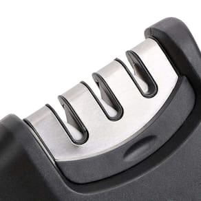 Este versátil Afiador de Facas Triplo é um utensílio indispensável em sua cozinha. Fácil e prático de manusear, basta segurar o afiador com uma mão e com a outra passar a faca, afiando de forma segura e rápida. Cabo anatômico que facilita apoiar o afiador em uma superfície para maior firmeza na hora de fazer a afiação. Seu cabo ergonômico oferece conforto na hora de manusear tanto com a mão direita ou esquerda. Além disso, possui 3 níveis de afiação, 1 com widea e 2 com porcelana: Preparar, Afiar e Polir. Dimensões aproximadas: - Comprimento: 21,5 cm - Largura: 5 cm - Altura: 6 cm - Peso: 120 g Material: - Aço Inoxidável - Tungstênio - Cerâmica - Plástico Emborrachado Itens inclusos: - 01 Afiador de facas