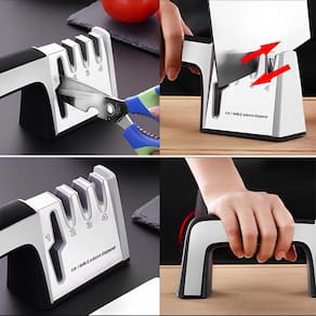 O que vem na embalagem: 1 Afiador de Facas e Tesouras 4 em 1