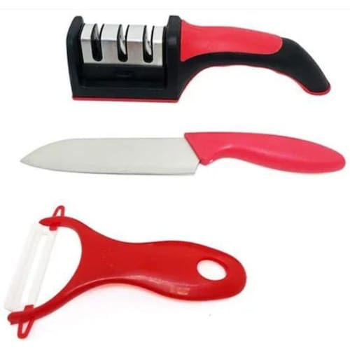 Afiador Amolador De Facas Faca Descascador De Legumes Frutas Instruções para uso do amolador -Passe a faca em cada etapa de 4 a 7 vezes. -Usar sempre com a Faca com a ponta para baixo. -Passar a Faca sempre puxando para trás nunca usar o movimento serrar . Afiador amolador de facas , produto da mais alta qualidade para facilitar a sua vida na hora de afiar a sua faca e cozinhar. CARACTERÍSTICAS DO PRODUTO: Indicado para afiar facas com lâminas de aço inox. Não é indicado para facas serrilhadas. Cabo anatômico, com detalhe emborrachado na cor vermelha Com base emborrachada. Medidas: 22x5cm:3 Espaços no amolador: • 1 - Afiar • 2 - Amolar • 3 - Acabamento Ideal para afiar amolar facas de lâminas de aço inox. Marca: Não Informado