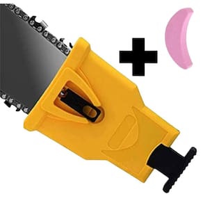 Descrição: Ferramenta prática, fácil de usar, agilizando o trabalho de afiação da corrente da motosserra. Basta encaixar a ponta do sabre com a corrente, ligar a motosserra e pressionar a base para efetuar a amolação. Em segundos sua corrente estará afiada.