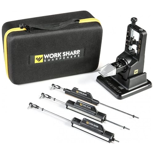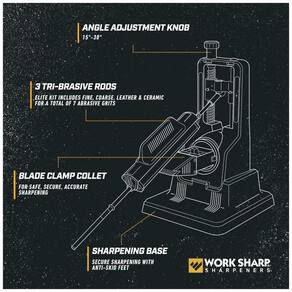 SETE 7 GRÃOS ABRASIVOS 220, 320, 400, 600 e 800 diamante, cerâmica fina, tira de couro e pequena haste de cerâmica para serrilhas. AJUSTÁVEL, REPETÍVEL O ângulo de afiação pode ser facilmente ajustado de 15 a 30 graus. RÁPIDO e FÁCIL indexe rapidamente entre grãos em cada pedra de afiar Tri Brasive e troque facilmente uma haste por outra sem interromper seu trabalho. AFIAR FACAS SERRIDAS use a pequena haste de cerâmica fina para afiar facas serrilhadas CRIE BORDAS PERSONALIZADAS escolha entre muitas opções de grão para reperfilar uma lâmina antiga ou criar uma bela borda polida em sua lâmina favorita Marca: Não Informado