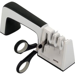 O Afiador de Facas e Tesouras Mor otimiza o espaço na gaveta e mantém os utensílios sempre prontos para o uso. Com ele é possível afiar tanto as facas quanto as tesouras de forma rápida e eficiente.