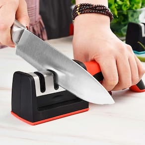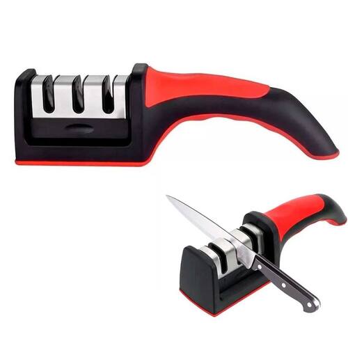 - Instruções de uso: • Passe a lâmina da faca pelo afiador, até que fique afiada.