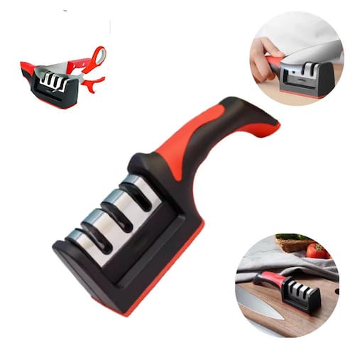 Afiador de facas com design moderno Descrição do anúncio: Nosso afiador de facas é indispensável para sua cozinha, sendo simples e rápido de usar. Basta dar de 3 a 4 movimentos através do afiador e pronto sua faca estará como nova. Seu cabo ergonômico oferece conforto e segurança na hora de manusear, além de ser resistente e compacto. O afiador possui três fases para amolar: preparar, afiar e polir. Além de recuperar o fio com rapidez e facilidade, ainda possui pedra de cerâmica que dá polimento final em suas facas. Conteúdo da embalagem: 01- afiador de facas Características: Afia facas e tesouras de aço inox Afia simultaneamente os dois lados da faca Não deve ser para afiar lâminas serrilhadas Não necessita água ou óleo para afiar Produto moderno, simples e fácil de usar Cabo ergonômico para conforto e segurança Três fases de afiação: preparar, afiar e polir Pedra de cerâmica para polimento final Especificações: Material: aço inoxidável, plástico, cerâmica e borracha Peso: 165g Largura: 5,1cm Altura: 5,5cm Comprimento: 21cm Principais perguntas sobre o produto e respostas: O afiador pode ser em facas de cerâmica Não, o afiador não deve ser em facas de cerâmica. O afiador acompanha alguma faca Não, o afiador não acompanha faca. Posso escolher a cor do afiador Não, as cores são enviadas de acordo com o disponível. O afiador pode ser em facas serrilhadas Não, o afiador não deve ser utilizado em facas serrilhadas. Preciso usar água ou óleo para afiar as facas Não, o uso de água ou óleo não é necessário. Qual é a do produto O produto tem do vendedor de 30 dias. Como devo usar o afiador corretamente Coloque o afiador em uma plataforma, segure o cabo com a mão esquerda e com a mão direita coloque a faca verticalmente na parte de afiar nº1 . Puxe sempre para trás com força apropriada e repita várias vezes até a faca estar afiada. Depois, utilize a parte nº2 e nº3 para polimento final. Quais são as dimensões do afiador Largura: 5,1cm, altura: 5,5cm, comprimento: 21cm. Marca: Não Informado Ean: 7906036493676