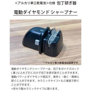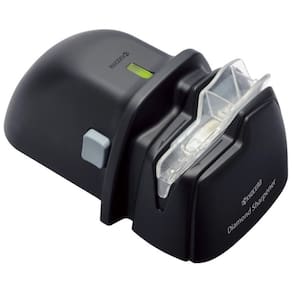 Pedra de amolar elétrica x diamante energia elétrica e pedra de amolar diamante garantem que sua faca esteja devidamente afiada Fácil de Afiar Basta puxar para frente ao longo da ranhura guia para afiar Afiação de facas de cerâmica O diamante é mais duro que a cerâmica, por isso pode afiar não apenas facas de metal aço inoxidável, aço, aço titânio, mas também facas de cerâmica Kyocera. Pilhas use 4 pilhas alcalinas AA vendidas separadamente Tamanho Corpo principal 6,1 x 3,9 x 2,9 polegadas 15,5 x 9,8 x 7, Peso 9,8 onças 260 g País Material Pedra de amolar Diamante industrial 600, Corpo principal resina ABS, poliacetal resistência ao calor 154F, 70C Marca: Não Informado