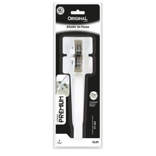 Afiador de Facas Premium Slim O Afiador de facas da Original Line, possui excelente desempenho de afiação em razão do disco de afiação de alta capacidade. Recupera o fio com rapidez e precisão. Cabo com mais segurança para afiar todos os tipos de facas de aço inox.