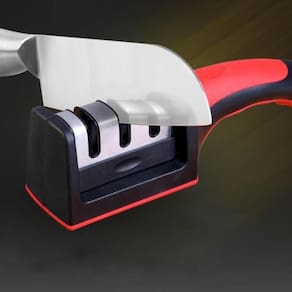 - É fácil de usar e proporciona uma maneira rápida e eficiente de afiar suas facas. - É compacto e fácil de armazenar. - É adequado para afiar facas de aço inox; - Afia simultaneamente os dois lados da faca; - Não precisa de água, nem óleo para afiar;