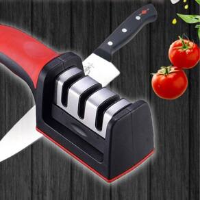 Afiador E Amolador De Facas 3 Tipos De Pedras' é um produto que torna o corte de alimentos muito mais fácil e preciso.