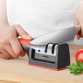 Afiador E Amolador De Facas 3 Tipos De Pedras' é um produto que torna o corte de alimentos muito mais fácil e preciso.