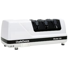 SHARPENER com guias de controle de ângulo de precisão que eliminam a adivinhação e garantem uma nitidez incrível sempre ESTÁGIO 1 e estágio 2 formam o primeiro e o segundo chanfros de uma borda em forma de arco durável. Estágio 3, um revolucionário disco flexível cria um terceiro bisel polido ultra afiado DIAMONDS Abrasivos 100 diamantados nos estágios 1 e 2 Decapagem e polimento ÚNICOS no estágio 3 para nitidez de cabelo FUNCIONA para facas de chef gourmet, facas de açougueiro, facas esportivas, facas serrilhadas e canivetes Unidade compacta FÁCIL DE USAR que qualquer pessoa pode colocar bordas surpreendentemente afiadas e duradouras em facas em segundos Marca: Não Informado