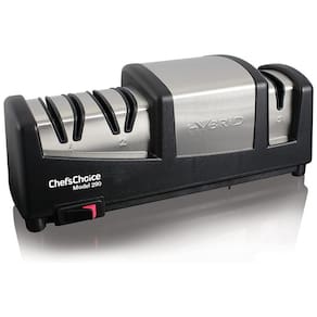Como todas as facas ficam cegas com o uso, é importante proteger seus investimentos em talheres com as ferramentas de manutenção corretas. O desempenho a longo prazo de uma faca depende de como ela é reafiada. Facas feitas do melhor aço manterão o fio por mais tempo, mas mesmo as melhores facas ficam cegas com o uso e o fio inicial de fábrica dura apenas nos primeiros dias ou semanas de uso. Do que em mais de 99 da vida útil de uma faca, o desempenho do fio depende de como é reafiado. Replicar a borda de fábrica inicial não é particularmente relevante, especialmente porque os afiadores modernos de hoje podem aplicar uma borda de fábrica melhor em cada faca. Cobertura de aço inoxidável escovado elegante e durável Abrasivos 100 diamantados nos estágios 1, 2 e 3 Combina afiação elétrica e manual para uma borda extremamente afiada e em forma de arco Marca: Não Informado