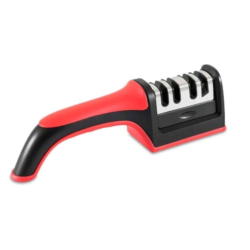 1 - coloque o afiador em uma plataforma, com a mão esquerda segure o cabo, e com a mão direita coloque a faca verticalmente na parte afiar n1 , com força apropriada e com a ponta da faca para baixo, puxar sempre para trás nunca para frente . Repita o processo várias vezes até que sua faca fique totalmente afiada. 2 - após o processo acima, coloque a faca no parte nº2 puxando a faca para trás como no processo anterior . 3- e para dar acabamento, repita o mesmo processo na parte nº3 . Obs - para afiar tesouras, utilize apenas a parte nº4 . Nota - verifique a posição ou ângulo da faca antes de afiar. Características:
