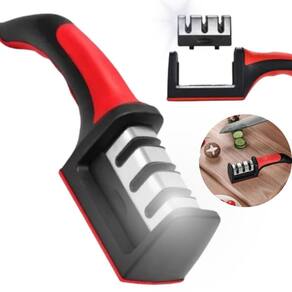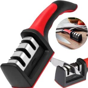 Descrição do anúncio: Nosso afiador de facas é indispensável para sua cozinha, sendo simples e rápido de usar. Basta dar de 3 a 4 movimentos através do afiador e pronto sua faca estará como nova. Seu cabo ergonômico oferece conforto e segurança na hora de manusear, além de ser resistente e compacto. O afiador possui três fases para amolar: preparar, afiar e polir. Além de recuperar o fio com rapidez e facilidade, ainda possui pedra de cerâmica que dá polimento final em suas facas. atenção: Não deve ser em facas de cerâmica. Não nos responsabilizamos por danos causados a sua faca devido ao uso incorreto do produto. Não utilizar o afiador em facas serrilhadas. Para evitar danificar a faca, recomendamos afiar suavemente e evitar movimentos para frente e para trás. Não deixe submerso na água. Não acompanha faca. As cores dos produtos enviados são de acordo com vermelho, cinza, verde . Conteúdo da embalagem: 01- afiador de facas Características: Afia facas e tesouras de aço inox Afia simultaneamente os dois lados da faca Não deve ser para afiar lâminas serrilhadas Não necessita água ou óleo para afiar Produto moderno, simples e fácil de usar Cabo ergonômico para conforto e segurança Três fases de afiação: preparar, afiar e polir Pedra de cerâmica para polimento final Especificações: Material: aço inoxidável, plástico, cerâmica e borracha Peso: 165g Largura: 5,1cm Altura: 5,5cm Comprimento: 21cm Principais perguntas sobre o produto e respostas: O afiador pode ser em facas de cerâmica Não, o afiador não deve ser em facas de cerâmica. o afiador acompanha alguma faca Não, o afiador não acompanha faca. posso escolher a cor do afiador Não, as cores são enviadas de acordo com o disponível. o afiador pode ser em facas serrilhadas Não, o afiador não deve ser utilizado em facas serrilhadas. preciso usar água ou óleo para afiar as facas Não, o uso de água ou óleo não é necessário. qual é a do produto O produto tem do vendedor de 30 dias. como devo usar o afiador corretamente Coloque o afiador em uma plataforma, segure o cabo com a mão esquerda e com a mão direita coloque a faca verticalmente na parte de afiar nº1 . Puxe sempre para trás com força apropriada e repita várias vezes até a faca estar afiada. Depois, utilize a parte nº2 e nº3 para polimento final. quais são as dimensões do afiador Largura: 5,1cm, altura: 5,5cm, comprimento: 21cm.