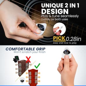 - Funcionalidade de uso duplo: combina uma palheta de guitarra durável com um sintonizador de áudio de alta sensibilidade, ideal para guitarristas, guitarras elétricas e baixistas.