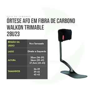CÓDIGO INTERNO (SKU): 101084 PRAZO LIMITE POSTAGEM: 3 dias CÓDIGO DE FÁBRICA : 28U23 CÓDIGO ANVISA: 10292010067 NCM: 90211091 MARCA: Ottobock CATEGORIA 1: Órtese COR: Preto TIPO: AFO ALTURA: 15 x 36 x 46cm PESO: 1,1Kg CARACTERÍSTICA: Fibra de Carbono MODELO: Trimable TAMANHO: 36-39 LADO: Esquerdo EAN / GTIN: 4032767134021