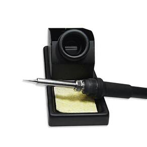 Para garantir maior usabilidade e segurança durante os processos de soldagem, a estação de solda afr 938-a possui inclusa em sua embalagem uma base metálica para apoio do ferro de solda enquanto o mesmo não estiver sendo utilizado, além de uma esponja vegetal utilizada para efetuar a limpeza da ponta de solda para evitar danos e deterioramento da mesma.