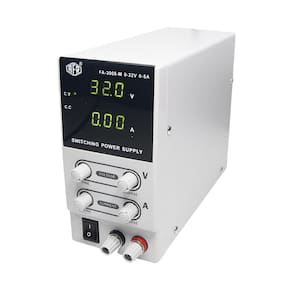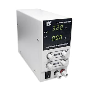 Equipamento digital de bancada, com dois displays de 3 dígitos tensão e corrente , capaz de fornecer uma saída variável com tensão de 0 a 32v dc e corrente de 0 a 5a dc. Possui ajuste de tensão e corrente ajustado por potenciômetro, além de proteção contra sobrecarga, curto circuito, super aquecimento e inversão de polaridade. de 1 ano Este produto é bivolt - 110 e 220volts Acompanha par de cabos para medição tipo jacaré Alta estabilidade e baixo ripple. Display 3 dígitos de fácil leitura para apresentação simultânea da tensão e corrente de saída. Saída variável: 0 32v, 0 5a. Ajuste de tensão e corrente através de potenciômetros de precisão. Ajustes grosso e fino de tensão e corrente. - alimentação: 127v / 220v 50/60hz . - visor: display led duplo - dimensões e peso: 205x160x85mm. - temperatura de operação: de 0º a 40ºc. - umidade de operação: menos que 80%. - pressão atmosférica: 86kpa104kpa. - modos de operação: tensão constante ou corrente constante. No máximo até 8 horas de uso contínuo. - modo de resfriamento: ventilação forçada por ventoinha. - limite de tensão/corrente: 32v 5a/ 10a - ripple: 200mvp-p. Acessórios: Um cabo de força do padrão brasileiro; Ponta de prova com garra jacaré; Manual de instruções. Marca: Não Informado