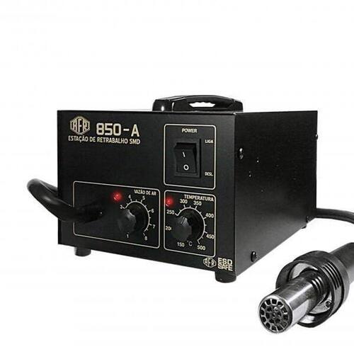 Estação de retrabalho - modelo analógicoPossui controle de temperatura e vazão de ar. Foi especialmente desenvolvida para técnicos profissionais, no retrabalho em placas eletrônicas e componentes smd. Possui resfriamento automático e certificado inmetro.É ideal para trabalhos com componentes smd e até mesmo bga, a estação afr garante alta precisão no controle de temperatura do canhão de arRetrabalho ar quente Controle da temperatura na faixa de 150 a 500 c; Precisão de controle da temperatura: menor que 2% Gabinete esd dissipativo; Resfriamento automático; Bomba tipo diafragma; Vazão de ar: 0,3 - 24,0 l/min. ajustável ; Resistência: 250 watts Bomba consumo: 45 watts; Consumo total: 270 watts para 127v / 340w para 220v Tensão: 127 ou 220 volts; Terceiro fio de aterramento;2 anos de garantia contra defeitos de fabricação