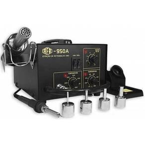 Estação de retrabalho e solda - modelo analógico A estação dupla afr é ideal para quem trabalha com eletrônica e necessita de uma estação específica para ressoldagens e troca de componentes smd e pth. Sendo 2 em 1 ela possui controle de temperatura no canhão de ar para smd e controle de temperatura no ferro de solda para pth . Possui certificado do inmetro. Características: Retrabalho ar quente Controle da temperatura na faixa de 150 a 500 c; Precisão de controle da temperatura: menor que 2% Gabinete esd dissipativo; Resfriamento automático; Bomba tipo diafragma; Vazão de ar: 0,3 - 24,0 l/min. ajustável ; Resistência: 250 watts Bomba consumo: 45 watts; Consumo total: 270 watts para 127v / 340w para 220v Tensão: 127 ou 220 volts; Terceiro fio de aterramento; Solda: ferro de solda Potência: 50 watts Controle de temperatura na faixa de 200 - 480 c Resistência de cerâmica - 24v Ferro, ponta e estação aterrados 2 anos de contra defeitos de fabricação Marca: Não Informado