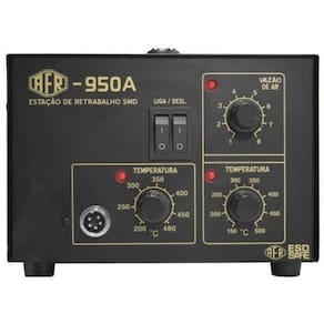 Estação de retrabalho e solda - modelo analógico A estação dupla afr é ideal para quem trabalha com eletrônica e necessita de uma estação específica para ressoldagens e troca de componentes smd e pth. Sendo 2 em 1 ela possui controle de temperatura no canhão de ar para smd e controle de temperatura no ferro de solda para pth . Possui certificado do inmetro. Características: Retrabalho ar quente Controle da temperatura na faixa de 150 a 500 c; Precisão de controle da temperatura: menor que 2% Gabinete esd dissipativo; Resfriamento automático; Bomba tipo diafragma; Vazão de ar: 0,3 - 24,0 l/min. ajustável ; Resistência: 250 watts Bomba consumo: 45 watts; Consumo total: 270 watts para 127v / 340w para 220v Tensão: 127 ou 220 volts; Terceiro fio de aterramento; Solda: ferro de solda Potência: 50 watts Controle de temperatura na faixa de 200 - 480 c Resistência de cerâmica - 24v Ferro, ponta e estação aterrados 2 anos de contra defeitos de fabricação
