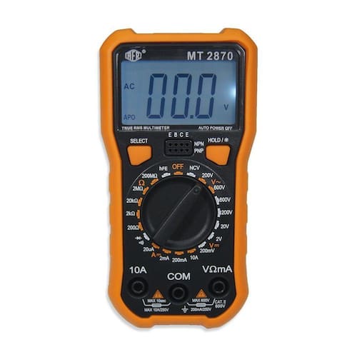True rms e função ncvA função ncv é para identificar se existe alguma tensão elétrica, apenas aproximando o sensor da parte frontal do multímetro esta função serve apenas como referência e é muito prático o multímetro irá mostrar no display traços e bips sonoros de acordo com a intensidade do sinal, indicando que existe energia voltagem no local.Bateria: 3v 1,5v x 2 Lcd tamanho mm : 51 x 28 Indicação de polaridade: automática, negativa indicada - . Indicação de sobrefaixa 1 é mostrado no display. Indicação de bateria fraca: indicação símbolo de bateria será mostrada. Mudança de faixa: manual. Temperatura de operação: 0c a 40c, rh menor que 80%. Temperatura de armazenamento: -20c a 60c, rh menor que 80%. Uso interno. Ambiente para especificação de precisão: 18c a 28 c 64f a 82 f , rh menor que 75%. Alimentação: 2 pilhas aaa Conformidade: iec1010 - sobretensão cat iii 600v e dupla isolação. Dimensões: 140 a x 72 l x 37 p mm. Peso: aprox. 195g incluindo pilhas .Bateria 3v 1,5v x 2 Lcd tamanho mm 51 x 28Max display 1999Mudança de faixa manualTensão dc - 200mv/2v/20v/200v/600vTensão ac - 200v/600vCorrente dc - 20ua/2ma/200ma/10aResistência - 200/2k/20k/200k/2m/200m ohmsTeste de continuidade - simTeste de diodo - simTeste transistor - simIndicação de bateria - simNcv non-contact voltage - simData hold - simAuto desligamento - simBacklight - simProteção contra impacto - simTrue rms - simImput impedance - 10m ohmsSampling rate: 3 times/sAc frequence response: 40-400 hzDimensões: 140 x 72 x 37mmPeso com bateria : 195gr aprox.Garantia: 12 meses