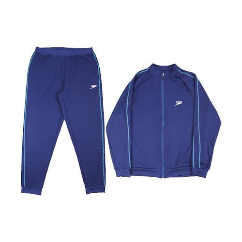 - Conjunto de jaqueta e calça - Confortável, não bloqueia os movimentos - Design esportivo, para momentos de lazer e prática esportiva - Logo Speedo emborrachado - Rib contrastante no punho da jaqueta - Bolsos na jaqueta