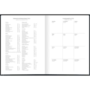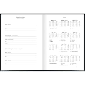 01 AGENDA Capa: Dura na cor Preta. Quantidade de folhas: 160 Caracteristicas:1 dia por pagina, exceto sab e domFormato: 123x166 mmGramatura: 63gm160 folhas