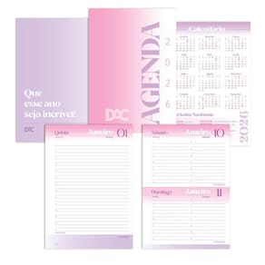 Agenda diária com material de toque macio para acompanhar o ano de 2026 sem perder nada. Ideal para carregar na bolsa ou na mala para qualquer lugar. Detalhes: capa/contra capa: papelão e material sintético folhas internas: papel offset 60g/m fita marca página páginas: 336 medidas: 134x190mm tamanho: a5 visão: diária exceto sábado e domingo atenção: imagem meramente ilustrativa. Pode ocorrer mudanças no tom da cor da tela do celular/pc para o produto real ou mudanças na embalagem do produto sem aviso prévio por parte do fabricante. Marca: Não Informado