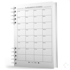 Cada mês possui uma folha dedicada ao planejamento mensal.
