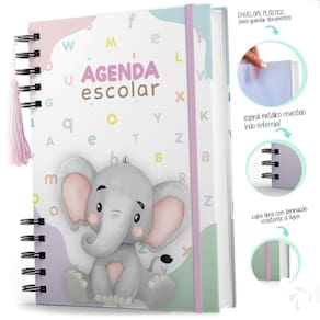 Agenda Creche Infantil Capa Dura Rotina Menina Elefante Com esta linda Agenda Escolar Infantil, fica muito mais prático acompanhar como foi o dia do bebê/criança durante o tempo na escola