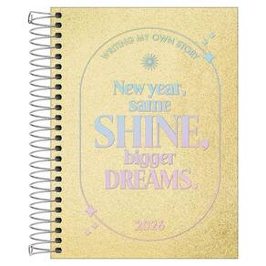 Se você busca um produto inspirado nas principais tendências de moda para se organizar, a agenda espiralada shine da tilibra é a escolha perfeita. O produto tem tamanho 11,7 x 16,4 cm, capa dura revestida com material especial brilhante e detalhes metalizados, bolsa de papel, adesivos em dobro e folhas com visão de 1 dia por página, exceto aos sábados e domingos. Esta agenda 2026, que possui 176 folhas, é escolha ideal para manter todas as tarefas e compromissos bem programados. Detalhes: bolsa: de papel decorada capa: com material especial e dura capa acabamento: com detalhe holográfico conteúdo: controle financeiro e listas folha de adesivos: dupla material: especial produto certificado: fsc visão: diária exceto sábado e domingo formato: 117mm x 164mm gramatura: 63 g/m número de folhas: 176 folhas atenção: imagem meramente ilustrativa. Pode ocorrer mudanças no tom da cor da tela do celular/pc para o produto real ou mudanças na embalagem do produto sem aviso prévio por parte do fabricante. Ean: 9789870017721