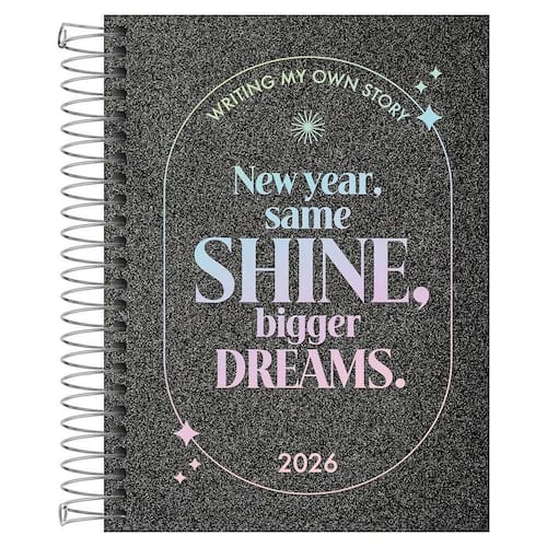 Se você busca um produto inspirado nas principais tendências de moda para se organizar, a agenda espiralada shine da tilibra é a escolha perfeita. O produto tem tamanho 11,7 x 16,4 cm, capa dura revestida com material especial brilhante e detalhes metalizados, bolsa de papel, adesivos em dobro e folhas com visão de 1 dia por página, exceto aos sábados e domingos. Esta agenda 2026, que possui 176 folhas, é escolha ideal para manter todas as tarefas e compromissos bem programados. Detalhes: bolsa: de papel decorada capa: com material especial e dura capa acabamento: com detalhe holográfico conteúdo: controle financeiro e listas folha de adesivos: dupla material: especial produto certificado: fsc visão: diária exceto sábado e domingo formato: 117mm x 164mm gramatura: 63 g/m número de folhas: 176 folhas atenção: imagem meramente ilustrativa. Pode ocorrer mudanças no tom da cor da tela do celular/pc para o produto real ou mudanças na embalagem do produto sem aviso prévio por parte do fabricante.