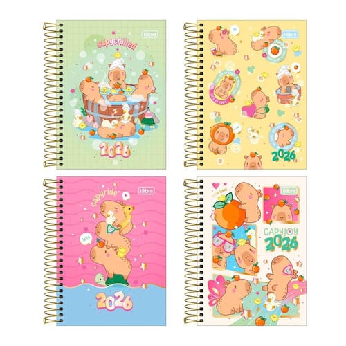 Se você busca um produto de papelaria fofa para se organizar, a agenda espiral Capyclub da Tilibra é a escolha perfeita. O produto tem tamanho 11 x 15,4 cm, capa dura com detalhe metalizado, adesivos e folhas decoradas, com visão de 1 dia por página, exceto aos sábados e domingos.