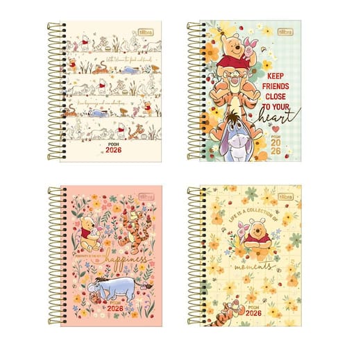 Se você busca um produto inspirado nos personagens mais queridos dos desenhos animados para se organizar, a agenda espiralada Pooh da Tilibra é a escolha perfeita.