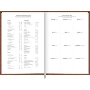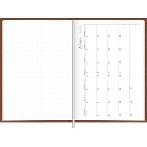 Capa: com material especial Capa acabamento: com espuma Fitilho: Sim Formato: 134mm x 192mm Gramatura: 56 g/m² Número de folhas: 176 folhas Planejamento mensal: Sim Produto certificado: FSC Visão: diária exceto sábado e domingo
