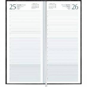 Detalhes Cor: Preto Capa com material especial e dura Capa acabamento com detalhe metalizado Fitilho Produto certificado fsc Visão diária Formato 123mm x 275mm Gramatura 63 g/m² Número de folhas 208 folhas Ean: 7891027120016