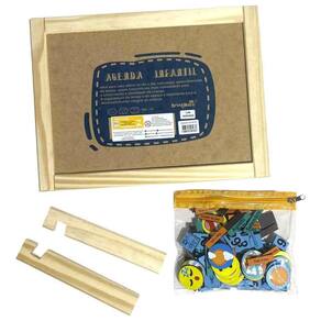 Ela é composta por um calendário mensal, onde as crianças podem marcar suas atividades, além de ter áreas para anotações importantes e dicas de brincadeiras.