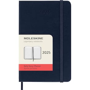 Moleskine Agenda diária clássica de 12 meses 2025, capa dura, bolso (8,9 cm x 14 cm), azul safira, 400 páginas - de janeiro a dezembro de 2025 - Capa dura e macia disponível em uma variedade de cores; papel cor marfim, 70 g/m², sem ácido - cantos arredondados, fecho elástico e marcador de página de fita combinando; bolso interno expansível coordenado por cores - Ferramentas úteis: calendário, planejamento de viagem, ideias e objetivos, páginas pautadas para anotações. Adesivos para personalizar seus planos e adesivos de ano para a lombada - o papel deste objeto Moleskine é feito de material de florestas bem gerenciadas e certificadas pelo FSC e outras fontes controladas.