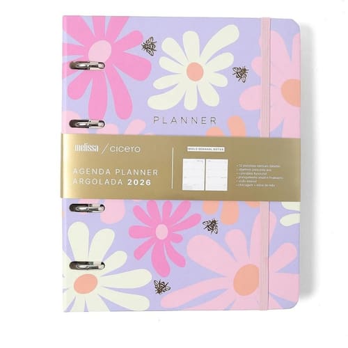 Agenda planner 2026 argolado melissa notas a5 color bloomy Agenda planner 2026 argolado a5 melissa color bloomy A agenda planner argolado 2026 melissa semanal notas a5 color bloomy está de cara nova a dupla semanal agora conta com um design mais limpo e funcional, com os topicos localizados na base da pagina: area destacada para importante, pautas para os objetivos e lista de checagem. Com cheirinho de melissa O miolo semanal notas: -87 folhas em papel pólennatural 80 g/m2 - bolsa pasta com calendário dos anos 2026/2027 e 2028 - 12 divisórias datadas em quatro cores Calendário funcional: Duas duplas para marcações importantes do ano, como aniversários, eventos, datas importantes. Uma visualização anual perfeita em suas mãos. Objetivos: Uma lista com os tópicos: qualidade de vida, pessoal, relacionamento e . Ideal para organizar o corpo e a mente. Planejamento anual: Duas duplas para uma organização do ano, com 3 meses por página. Esta visualização anual é perfeita para um planejamento a longo prazo. Planejamento financeiro: Para um melhor planejamento financeiro do ano, temos uma dupla para escrever entradas, gastos e balanço de cada mês. Visão mensal: No início de cada mês, temos uma dupla com a visão de todos os seus dias, agora acompanhados dos calendários dos meses anterior e posterior. Uma visualização da organização a médio prazo. Checagem + início do mês: Checagem: objetivos conquistados, playlist do mês, ficou para o mês que vem e descobertas Início do mês com área pautada para escrever os planos. Páginas anotações: Ao fim da agenda, temos duplas pontadas para anotações diversas. Ótimo para quem quer escrever um pouco mais. Características: - marca: cícero - modelo: semanal notas a5 2026 melissa color bloomy - medida: 14,8 x 21cm tamanho a5 - capa rígida impressa em policromia - encadernação: argolado - miolo personalizado em 87 folhas, em papel pólen 80g Produto oficial licenciado Marca: Não Informado