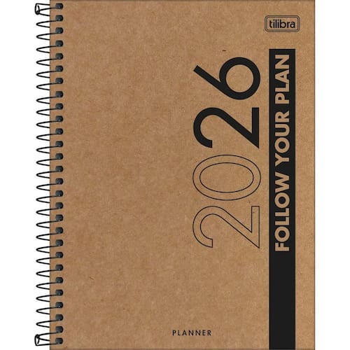 Planeje seus compromissos com o planner espiralado Kraftwork da Tilibra. O produto tem tamanho 17,7 x 24 cm, capa dura e folhas com visões anual, mensal e semanal. Este planner 2026, que possui 80 folhas em papel creme, com gramatura de 90 g/m², é a escolha certa para manter a rotina sempre em ordem.
