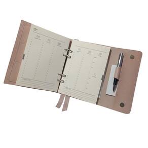 • Medidas 165 x 210 mm fechada, com aba para papéis e fechamento por botão magnético.