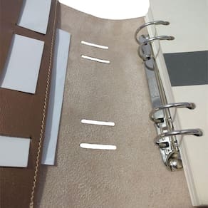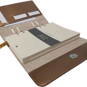 • Medidas 165 x 210 mm fechada, com aba para papéis, três porta cartões, fechamento por botão magnético e cortes frontais à laser para acomodação da ferragem.